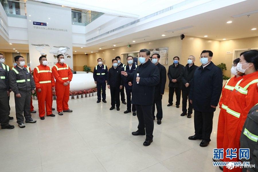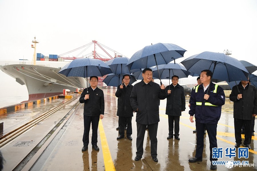 3月29日,習(xí)近平前往寧波舟山港穿山港區(qū)考察。穿山港區(qū)采取措施及早恢復(fù)生產(chǎn),港口吞吐量已逐步恢復(fù)至日常水平。在業(yè)務(wù)調(diào)度大廳,習(xí)近平聽(tīng)取了港區(qū)情況和復(fù)工復(fù)產(chǎn)情況匯報(bào)。在一樓大廳,習(xí)近平同港口職工代表親切交流,對(duì)他們表示慰問(wèn)。習(xí)近平強(qiáng)調(diào),寧波舟山港率先恢復(fù)生產(chǎn),對(duì)推動(dòng)我國(guó)企業(yè)復(fù)工復(fù)產(chǎn)、恢復(fù)物流體系、恢復(fù)全球產(chǎn)業(yè)鏈具有重要意義。要未雨綢繆,關(guān)注境外疫情形勢(shì),在堅(jiān)持不懈抓好疫情防控的同時(shí),積極應(yīng)對(duì)和化解各國(guó)為抗擊疫情采取的各項(xiàng)限制性措施對(duì)貨物航運(yùn)帶來(lái)的影響,促進(jìn)我國(guó)出口貨物出得去、進(jìn)口貨物進(jìn)得來(lái)。習(xí)近平希望他們努力克服疫情影響,爭(zhēng)取優(yōu)異成績(jī)。