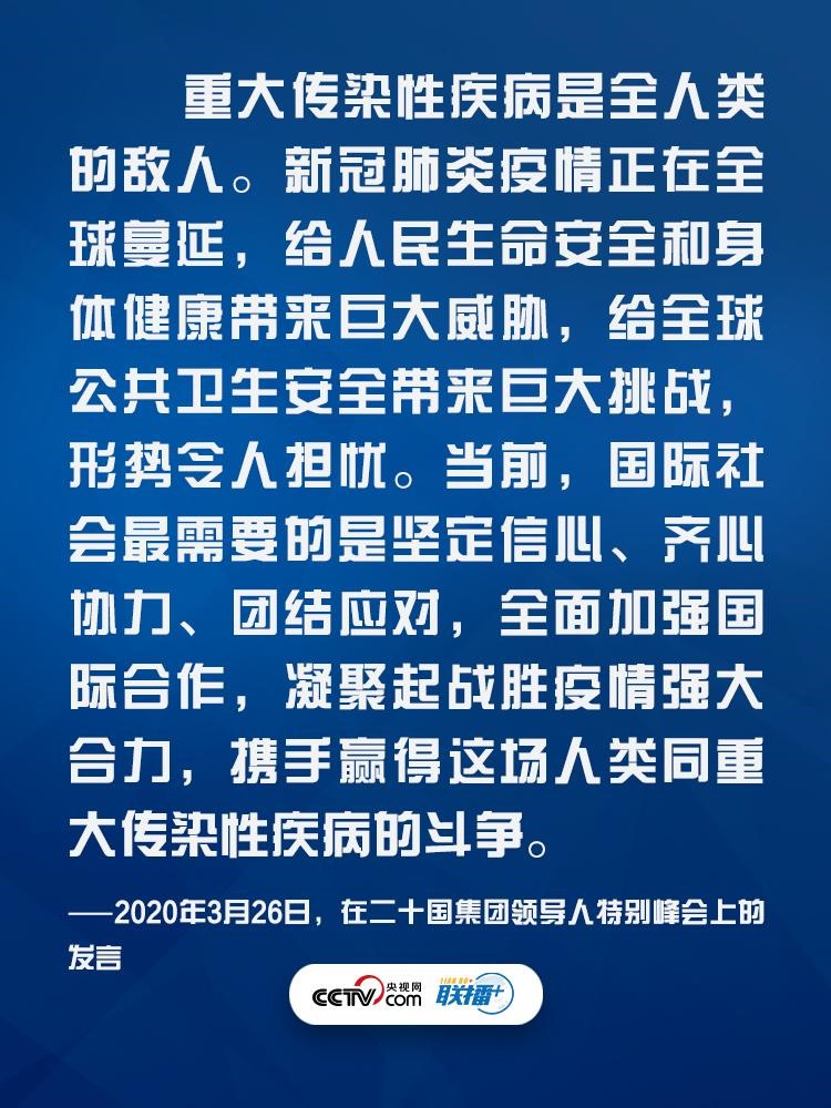 在外交場(chǎng)合,習(xí)主席因時(shí)因勢(shì)不斷闡釋團(tuán)結(jié)抗疫的重要性,為全球抗疫注入信心與力量?!堵?lián)播+》特梳理其中振奮人心的話(huà)語(yǔ),與您一起學(xué)習(xí)領(lǐng)悟其中要義。
