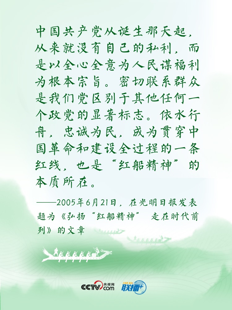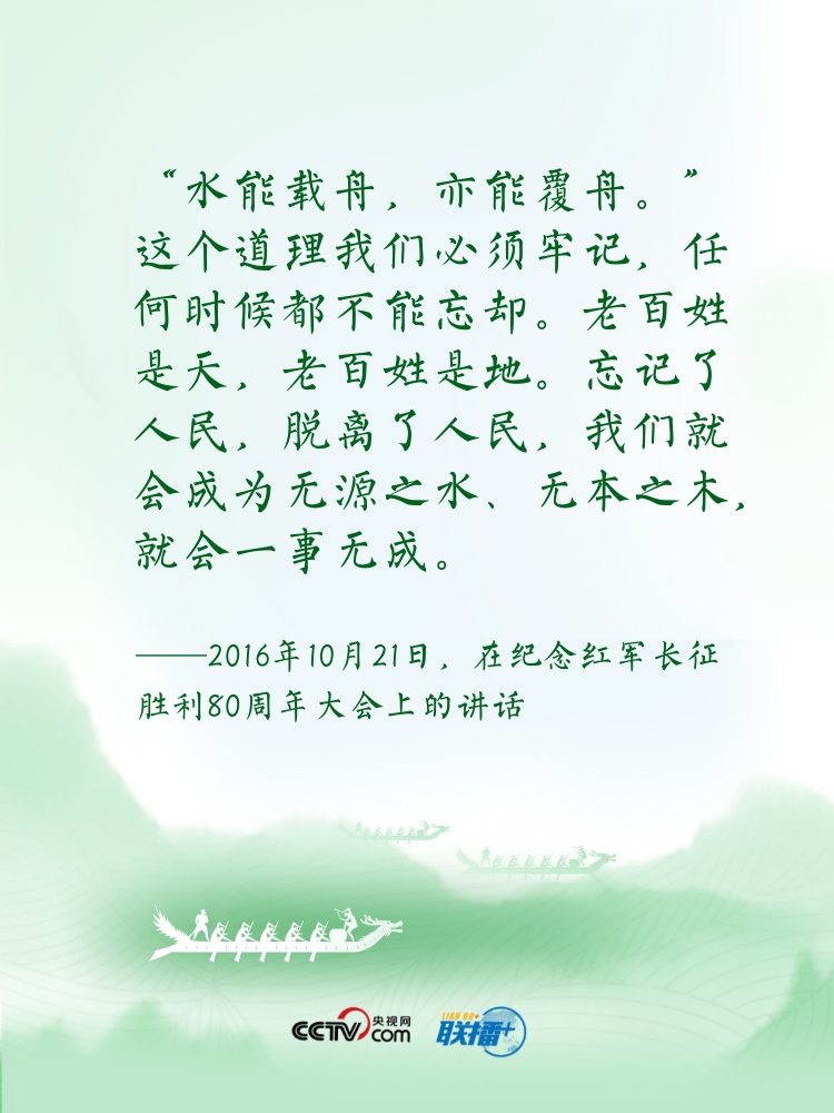 過端午,賽龍舟。龍舟這項傳統(tǒng)運動,象征著中華民族的拼搏、堅韌、團(tuán)結(jié),承載著深植在民族基因里的愛國主義之魂?!爸邸弊肿怨乓詠碓谥腥A傳統(tǒng)文化中都有著深刻寓意?!耙浪兄郏艺\為民”“逆水行舟,不進(jìn)則退”......習(xí)近平總書記曾多次以“舟”為喻闡釋思想,寄情言志。央視網(wǎng)《聯(lián)播+》特進(jìn)行梳理,讓我們沿著總書記指引的方向,團(tuán)結(jié)奮進(jìn),砥礪前行?! ?/p>
