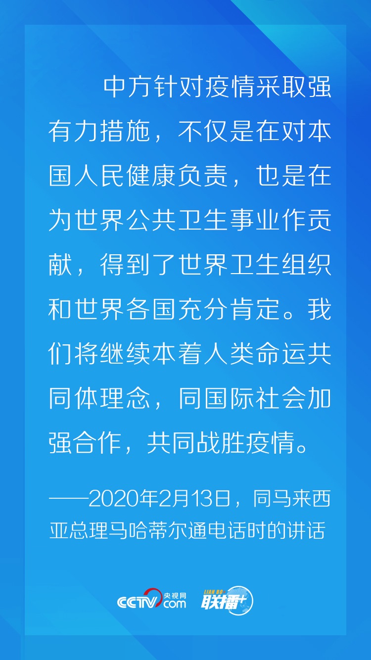 新冠肺炎疫情發(fā)生以來,習近平主席始終堅持人民至上理念,在統(tǒng)籌做好本國疫情防控和經(jīng)濟社會發(fā)展工作的同時,頻繁與多個國家領(lǐng)導(dǎo)人及國際組織負責人保持電話、書信、視頻會議為主渠道的“云外交”溝通,處處體現(xiàn)著習近平主席以人民為中心的發(fā)展思想。