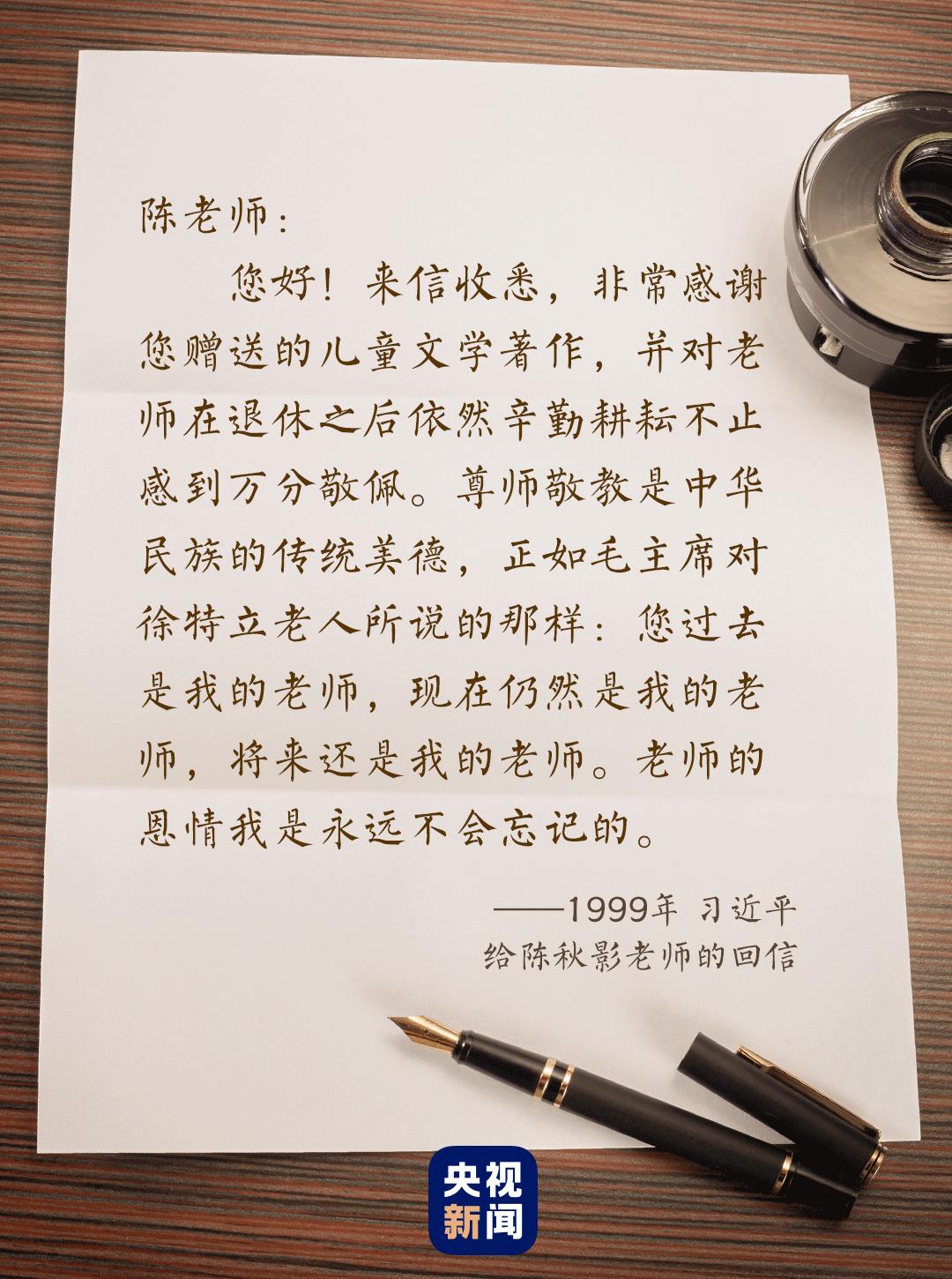 尺素寸心,情意拳拳。陳秋影說(shuō),在她看來(lái),習(xí)近平在回信中使用的“尊師敬教”這個(gè)詞,一個(gè)“敬”字道出了學(xué)生對(duì)老師的情誼。