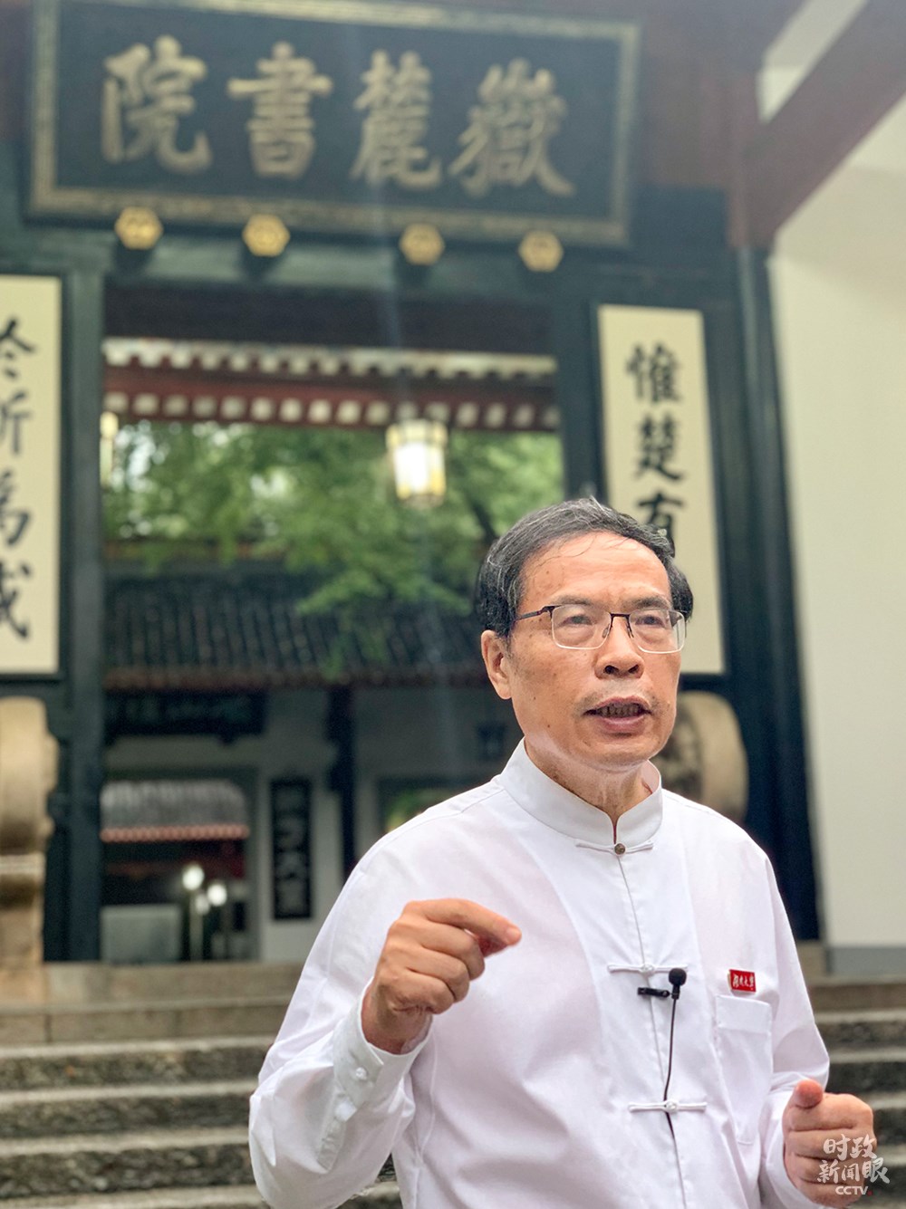 △當(dāng)天給總書(shū)記作介紹的是曾任岳麓書(shū)院院長(zhǎng)20多年的朱漢民教授。(總臺(tái)央視記者盧心雨拍攝)