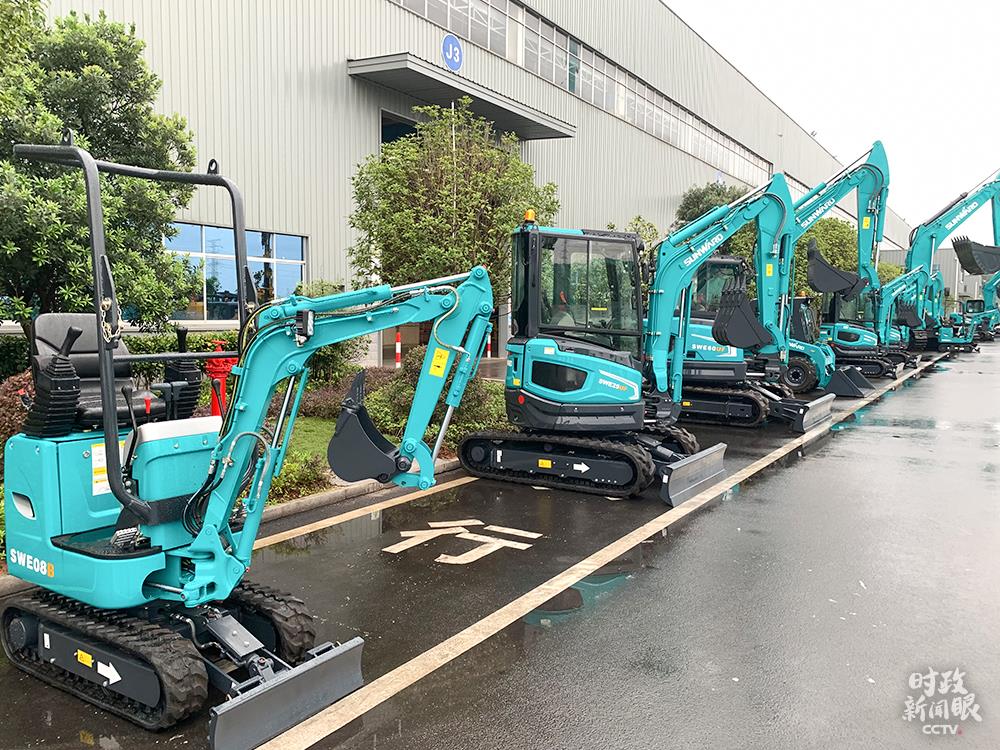 △這是不同型號(hào)的微型挖掘機(jī),特點(diǎn)是動(dòng)臂可偏轉(zhuǎn),底盤(pán)可伸縮,適合城市改造、農(nóng)田水利等小規(guī)模項(xiàng)目。(總臺(tái)央視記者章猛拍攝)