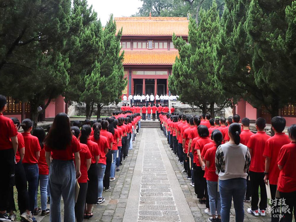△岳麓書(shū)院2020級(jí)新生入學(xué)禮現(xiàn)場(chǎng),142名新生齊聚大成殿前。(來(lái)源于岳麓書(shū)院官網(wǎng))