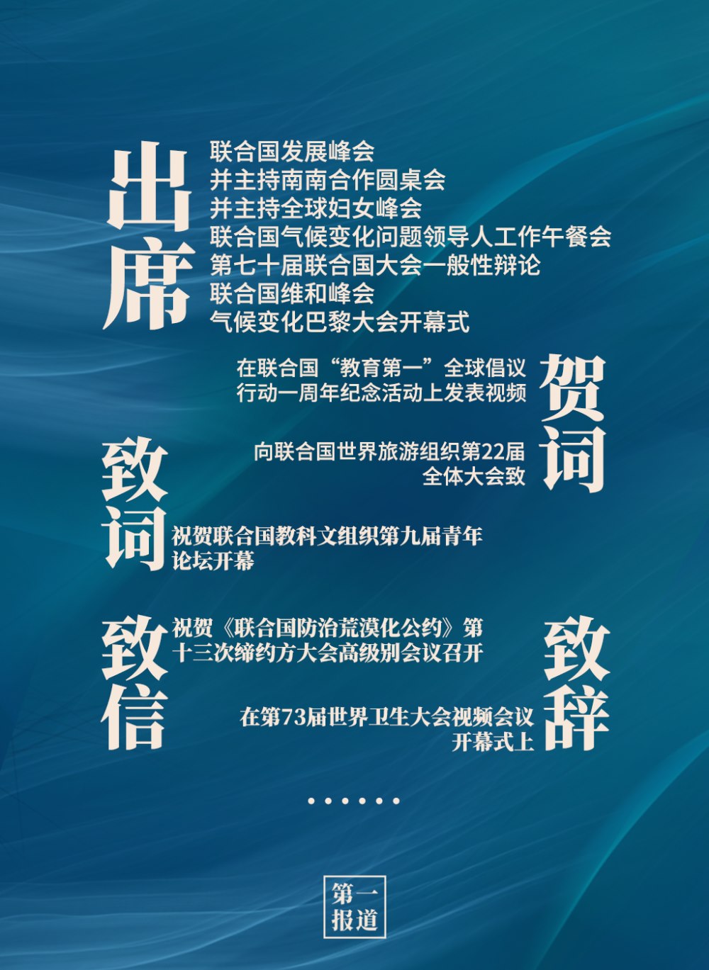 2013年以來,習(xí)主席通過出席聯(lián)合國活動、向聯(lián)合國活動致信函等方式,進(jìn)一步深化中國同聯(lián)合國的合作,為維護(hù)世界和平、促進(jìn)共同繁榮、完善全球治理貢獻(xiàn)中國智慧,注入中國動力。
