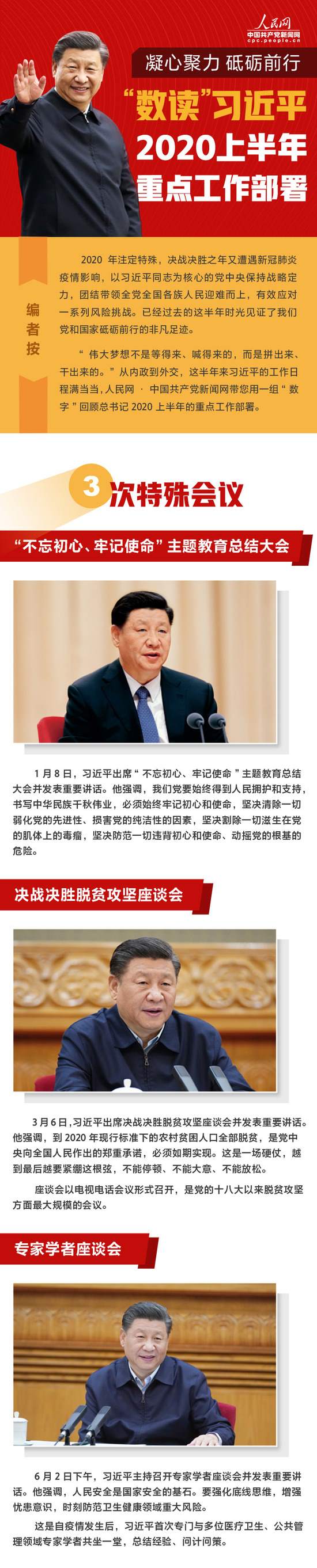 細數(shù)今年上半年,習(xí)近平夙夜在公,勤勉工作,不斷刷新“忙碌指數(shù)”:數(shù)十次出席重要會議部署各項工作,8次國內(nèi)考察,調(diào)研足跡遍及7省區(qū)市,3次出席國際重要會議并發(fā)表講話,20余次致信、回信海內(nèi)外人士,60次就疫情防控等話題與40余位外國政要和國際組織負責人通電話……人民網(wǎng)·中國共產(chǎn)黨新聞網(wǎng)推出系列圖解報道,帶您全方面回顧習(xí)近平的2020上半年。