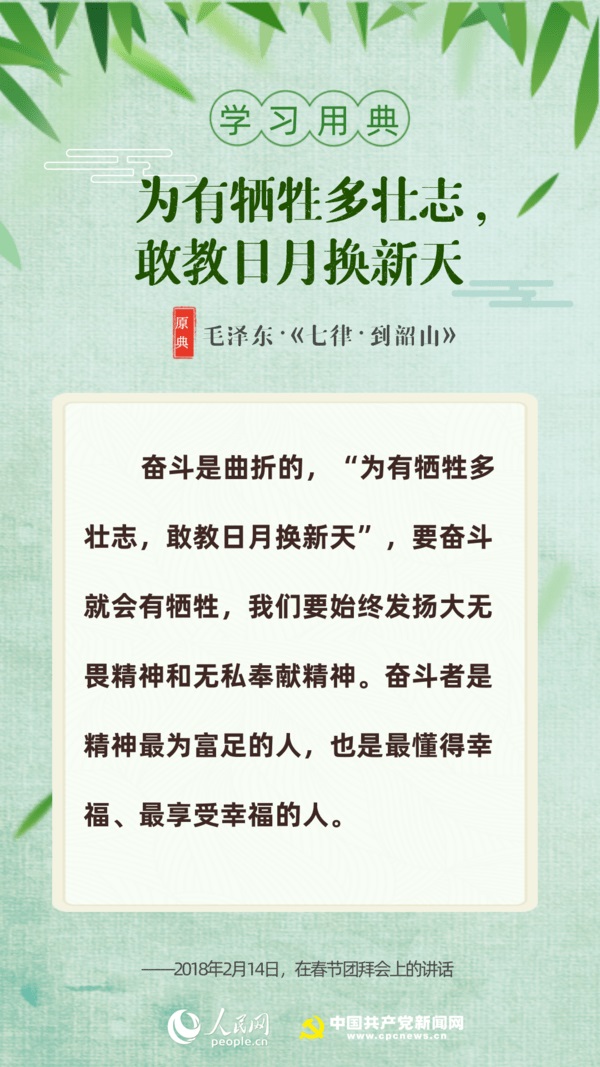 【編者按】“志不求易者成,事不避難者進(jìn)?!苯?,習(xí)近平總書記給中國石油大學(xué)(北京)克拉瑪依校區(qū)畢業(yè)生回信,對廣大高校畢業(yè)生提出殷切期望?!叭松谇?,勤則不匱”“積土而為山,積水而為?!薄陙?,習(xí)近平多次引用詩句典故,激勵包含廣大青年在內(nèi)的全黨全國各族人民拼搏奮進(jìn)、埋頭苦干。正值“戰(zhàn)疫”“戰(zhàn)貧”關(guān)鍵時刻,人民網(wǎng)·中國共產(chǎn)黨新聞網(wǎng)與您一起回顧習(xí)近平講話中關(guān)于“奮斗”的10個名句。