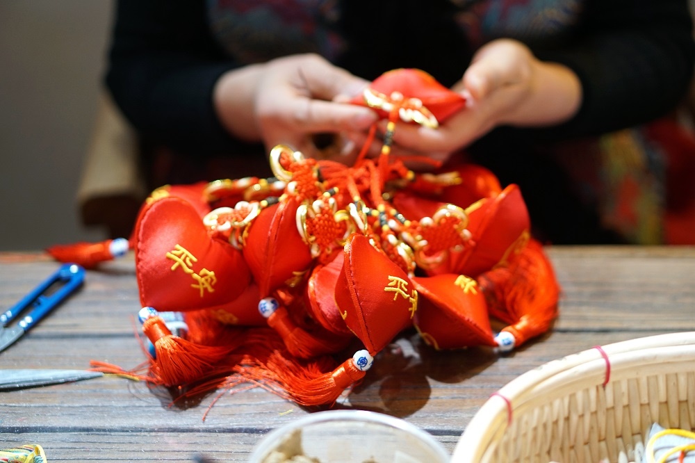 “這叫‘金絲寶葫蘆’,寓意招財(cái)進(jìn)寶。這個(gè)小蘋(píng)果,掛在車上寓意平平安安……”