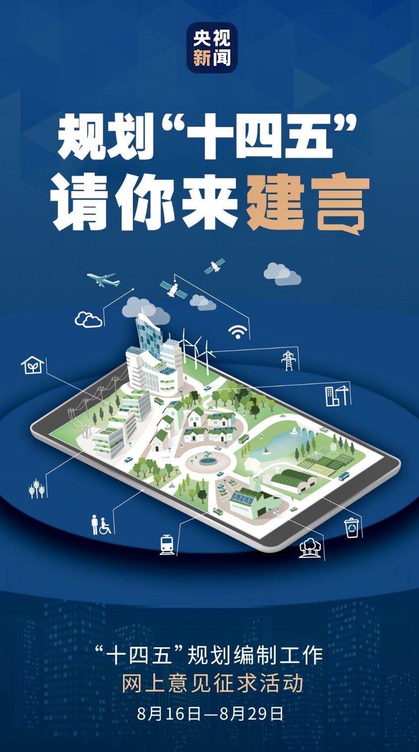 明年,我國開始實(shí)施“十四五”規(guī)劃。前不久,總書記對“十四五”規(guī)劃編制工作作出重要指示,要求開門問策、集思廣益,切實(shí)把社會(huì)期盼、群眾智慧、專家意見、基層經(jīng)驗(yàn)充分吸收到“十四五”規(guī)劃編制中來。