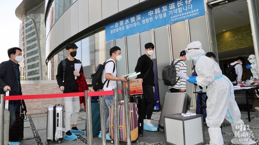 △中韓兩國啟動(dòng)人員往來“快捷通道”。這是來自韓國的企業(yè)員工抵達(dá)天津。