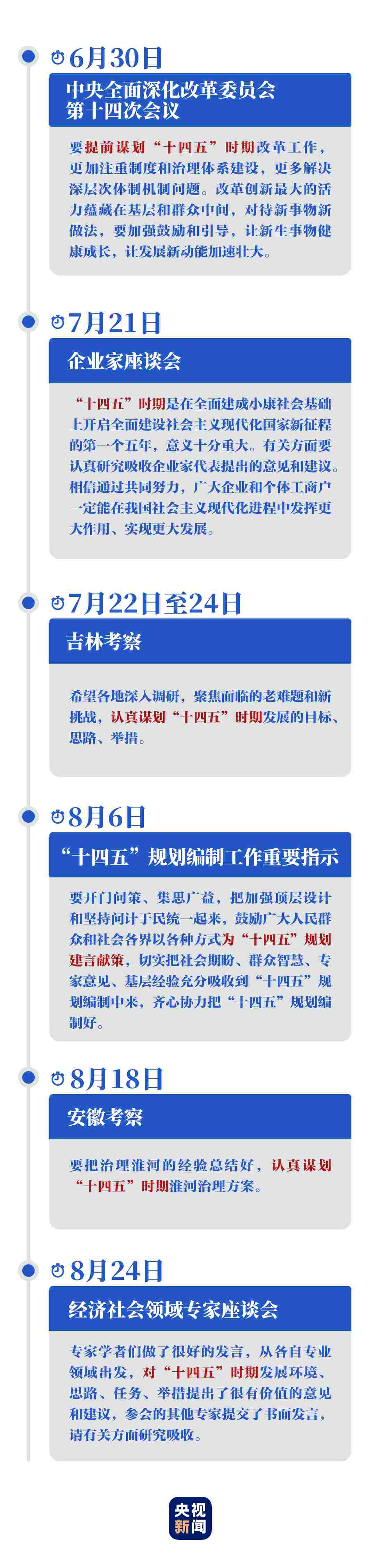 今年以來,習(xí)近平總書記多次主持召開重要會議、赴地方考察,就“十四五”開門問策,聽取大家對當(dāng)前經(jīng)濟形勢、“十四五”規(guī)劃的意見和建議,強調(diào)要集思廣益、齊心協(xié)力把“十四五”規(guī)劃編制好。