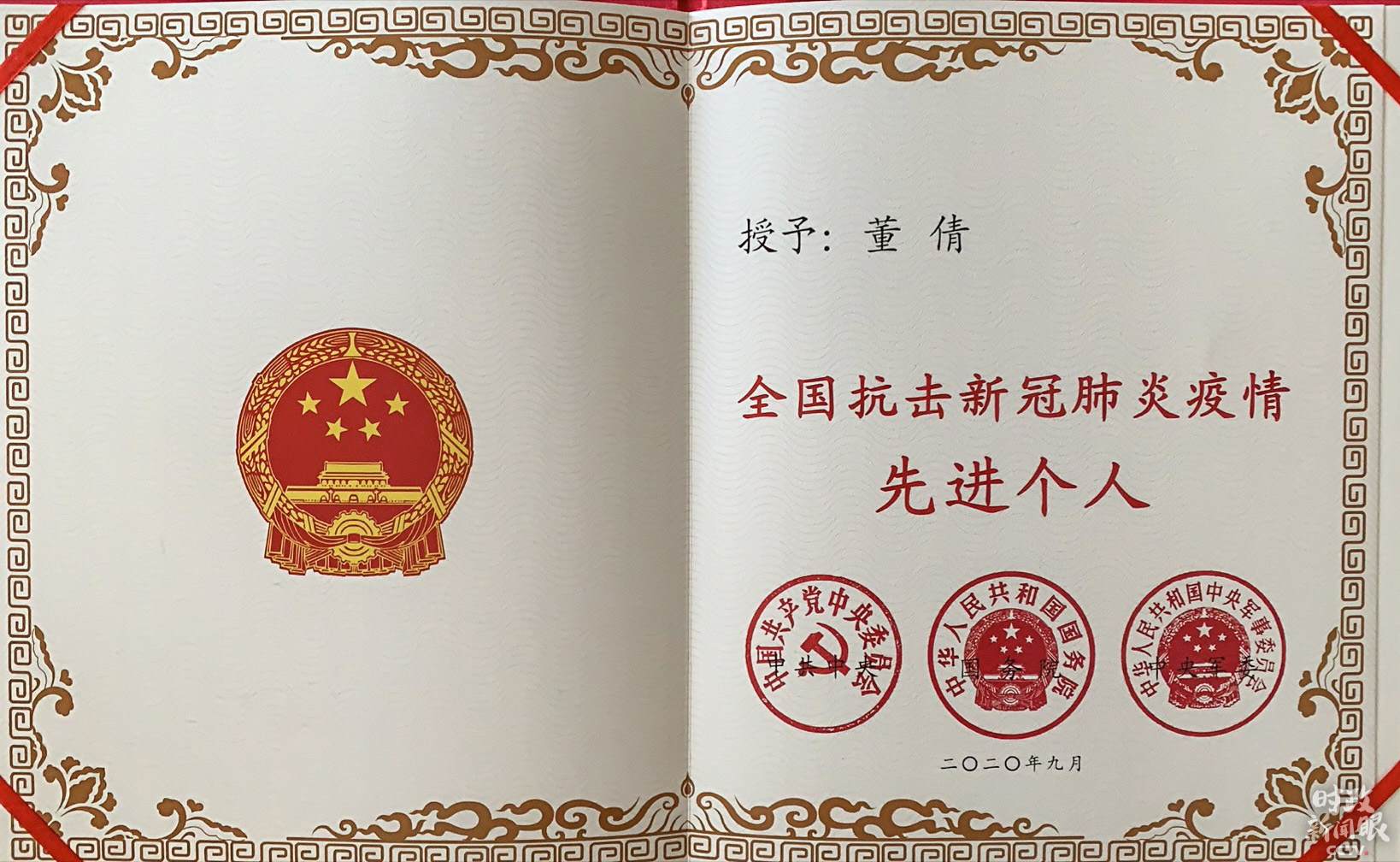 △中央廣播電視總臺(tái)主持人董倩獲得全國(guó)抗擊新冠肺炎疫情先進(jìn)個(gè)人稱(chēng)號(hào)。
