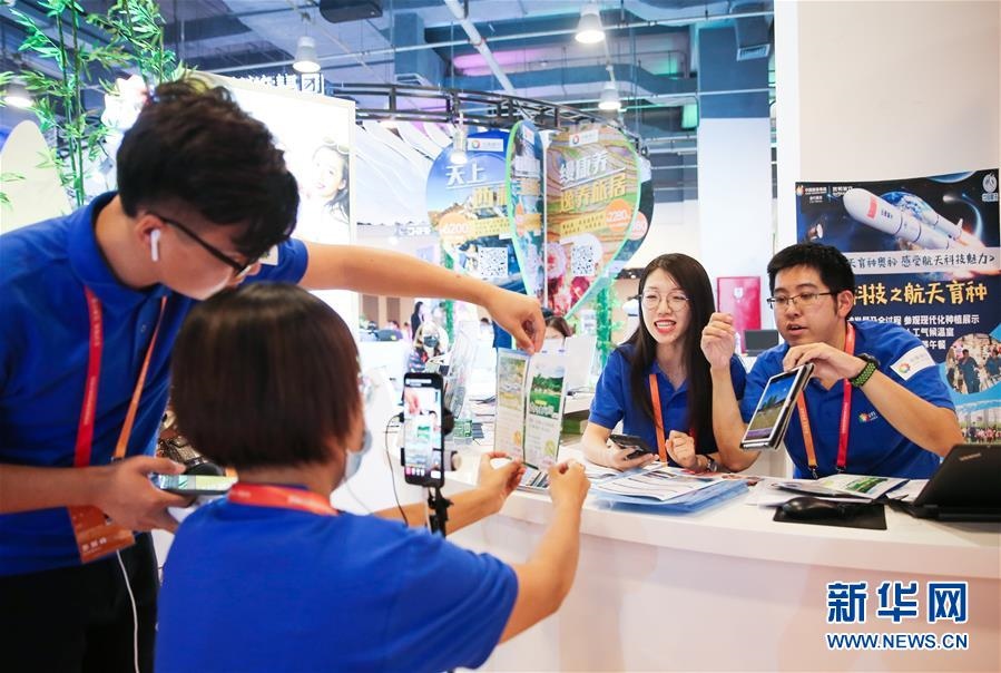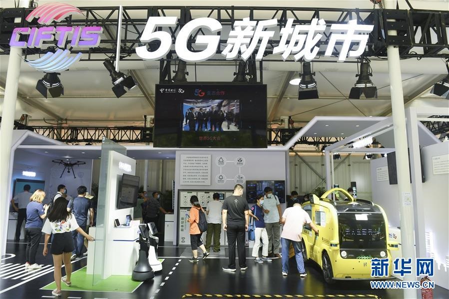 觀眾在2020年中國國際服務(wù)貿(mào)易交易會5G通信服務(wù)專題展區(qū)參觀(2020年9月7日攝)。新華社記者魯鵬攝
