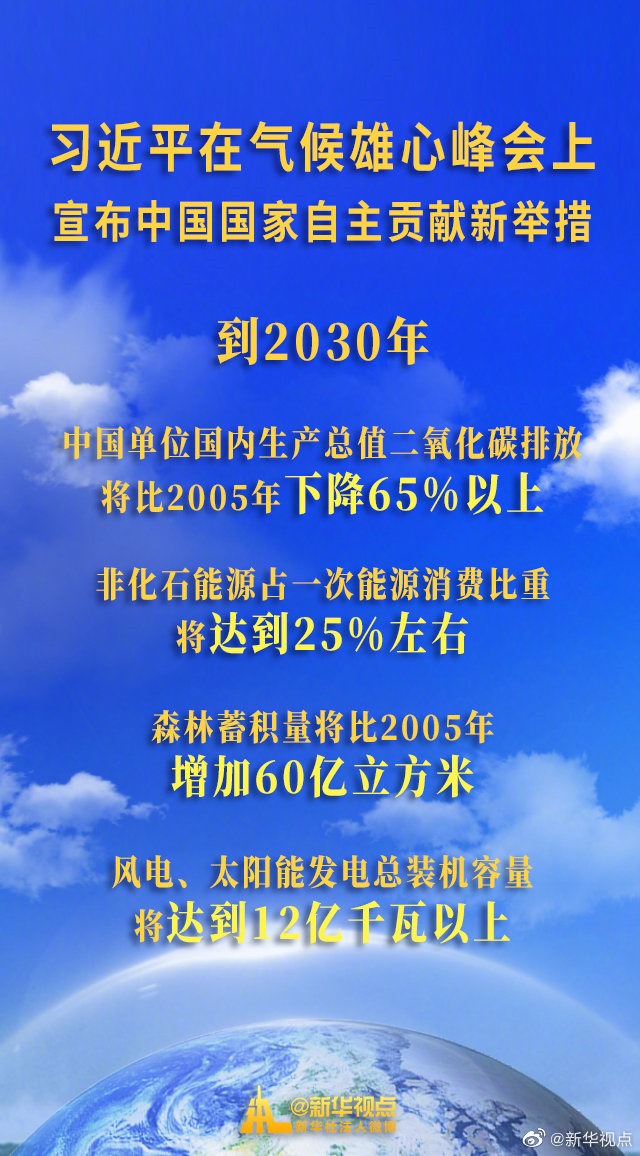 12月12日,國家主席習(xí)近平在氣候雄心峰會上宣布中國國家自主貢獻新舉措?! ?/p>