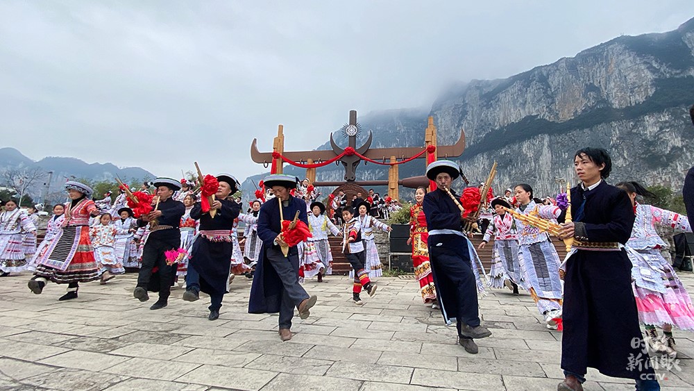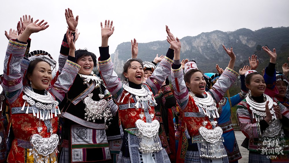 播放視頻畫(huà)中畫(huà)△視頻丨化屋村村民唱起苗族語(yǔ)歡歌,歌詞大意是“我們都是好朋友,一起跳舞吧”。(總臺(tái)央視記者楊立峰拍攝)