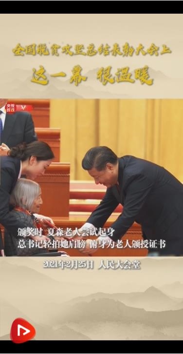 習近平在總結表彰大會上莊嚴宣告:“經過全黨全國各族人民共同努力,在迎來中國共產黨成立一百周年的重要時刻,我國脫貧攻堅戰(zhàn)取得了全面勝利!”
