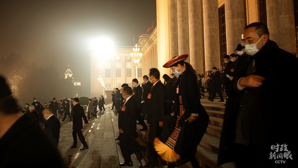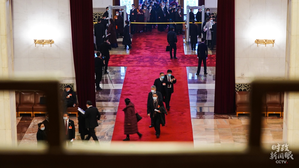 △開幕會(huì)結(jié)束后,委員們離開會(huì)場。(總臺(tái)央視記者程鋮拍攝)