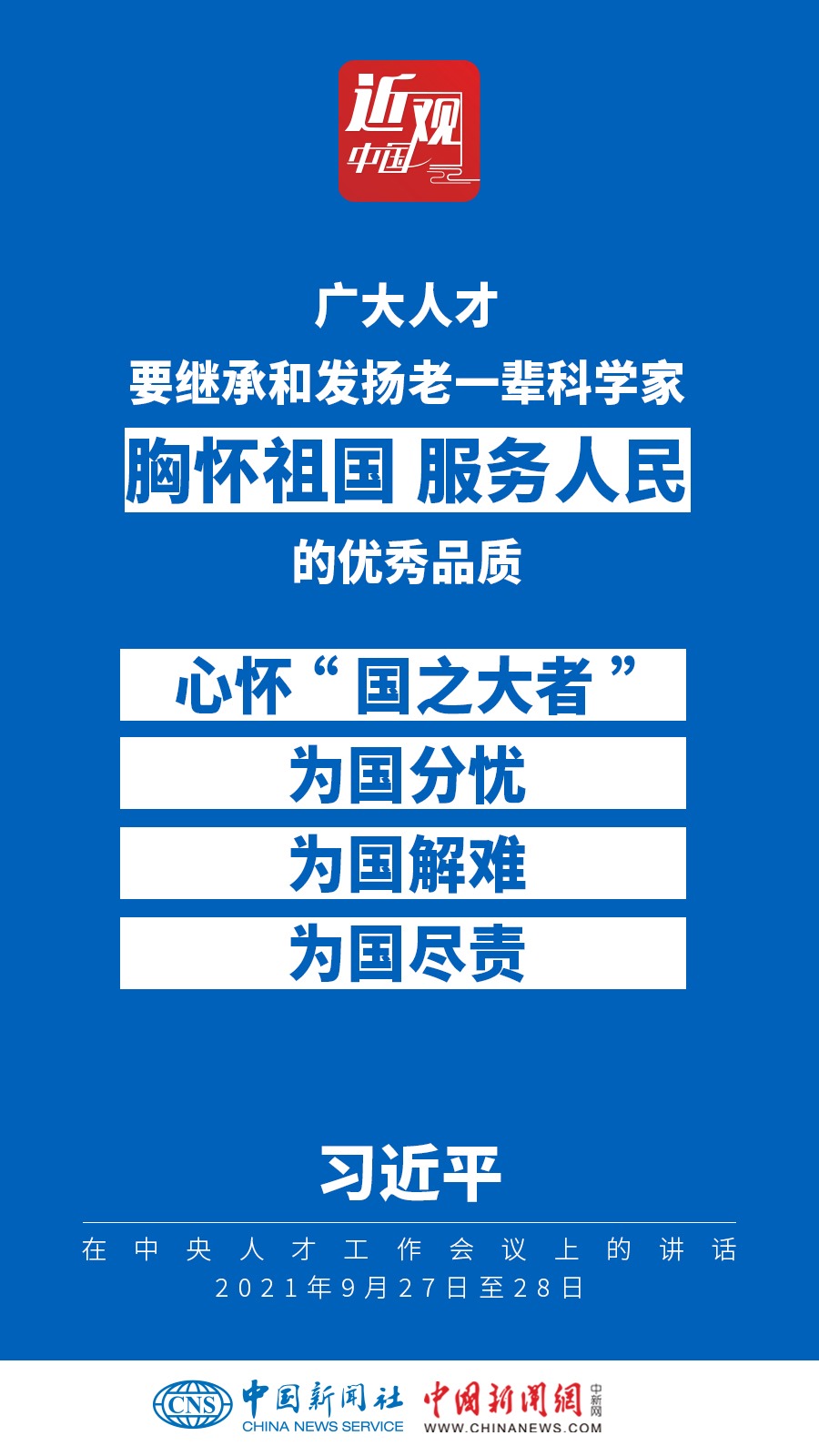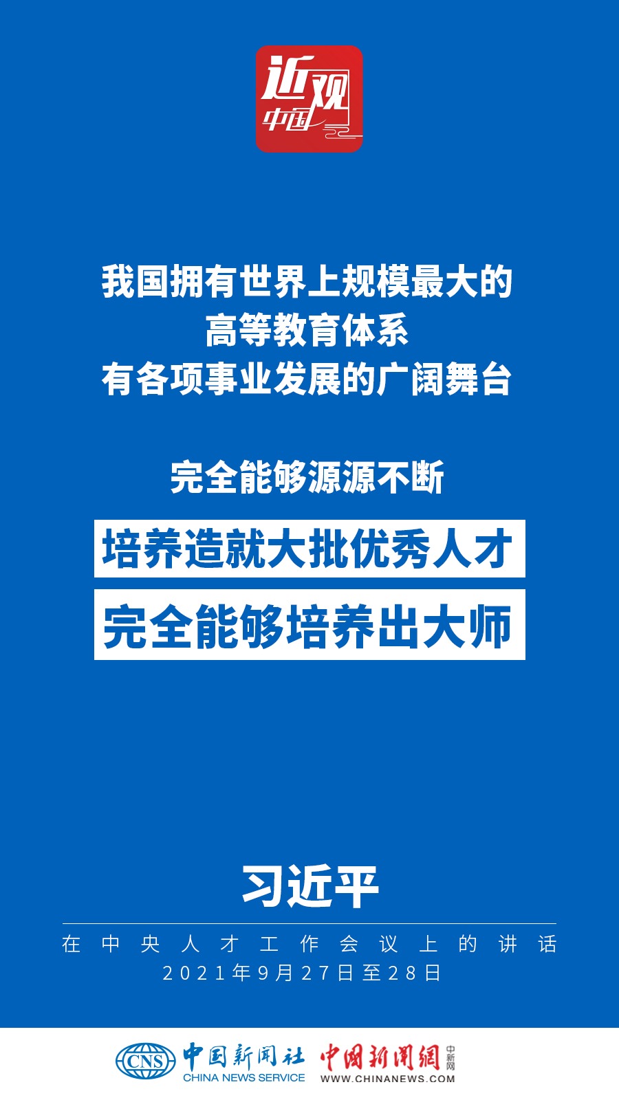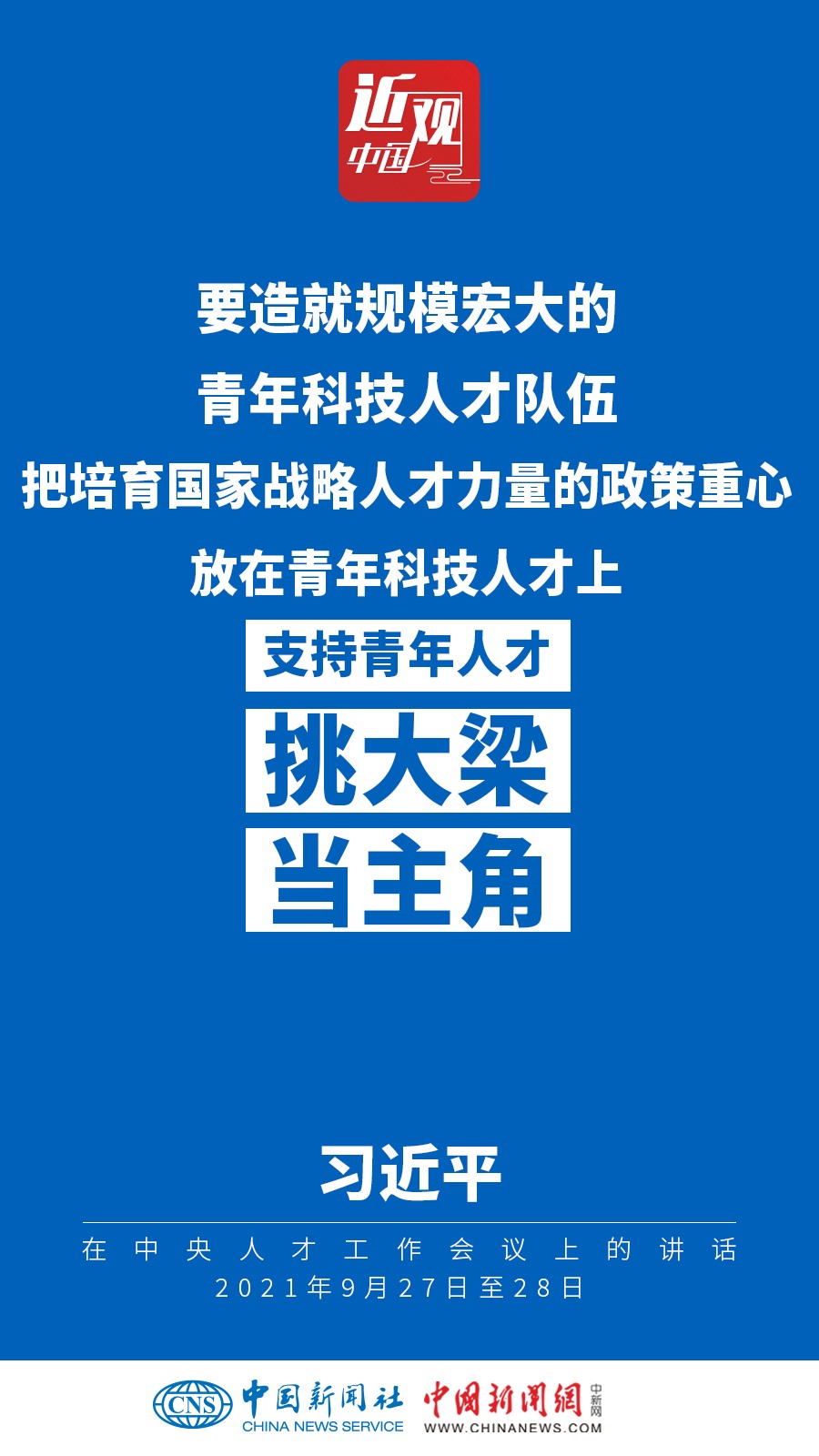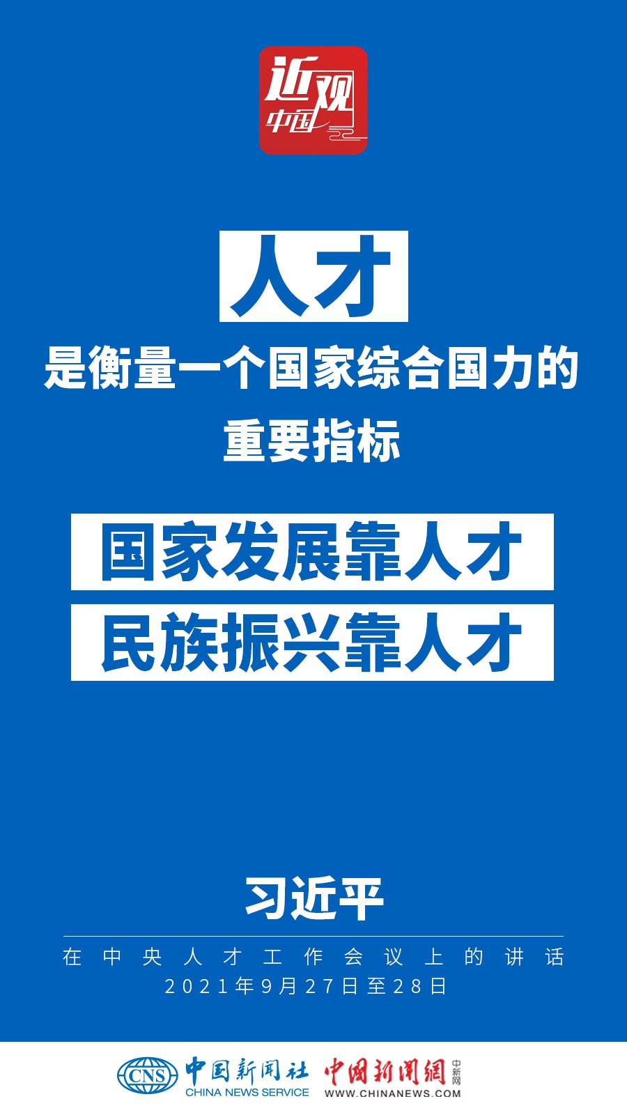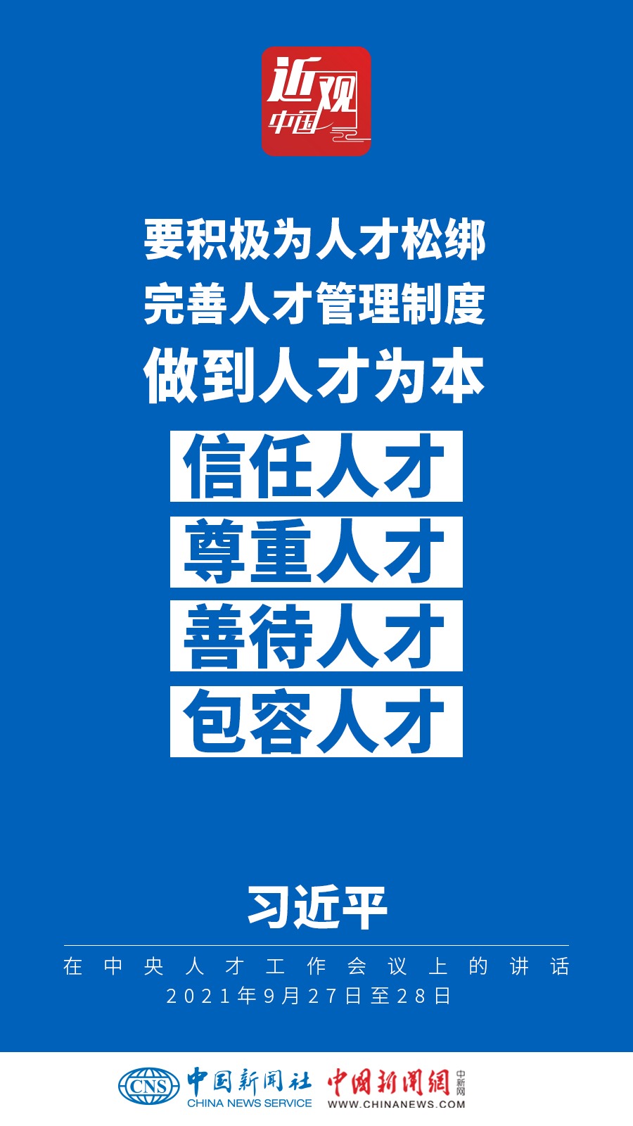 中央人才工作會(huì)議9月27日至28日在北京召開(kāi)。中共中央總書(shū)記、國(guó)家主席、中央軍委主席習(xí)近平出席會(huì)議并發(fā)表重要講話(huà)。他強(qiáng)調(diào)——
