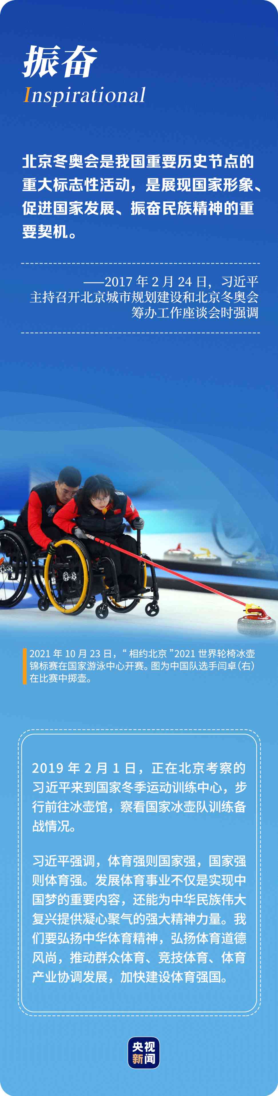 “辦好北京冬奧會、冬殘奧會是黨和國家的一件大事,是我們對國際社會的莊嚴(yán)承諾,做好北京冬奧會、冬殘奧會籌辦工作使命光榮、意義重大。”6年多來,習(xí)近平總書記始終惦記著冬奧會籌辦進(jìn)展,多次實(shí)地考察、主持召開重要會議部署推進(jìn)冬奧籌辦工作。