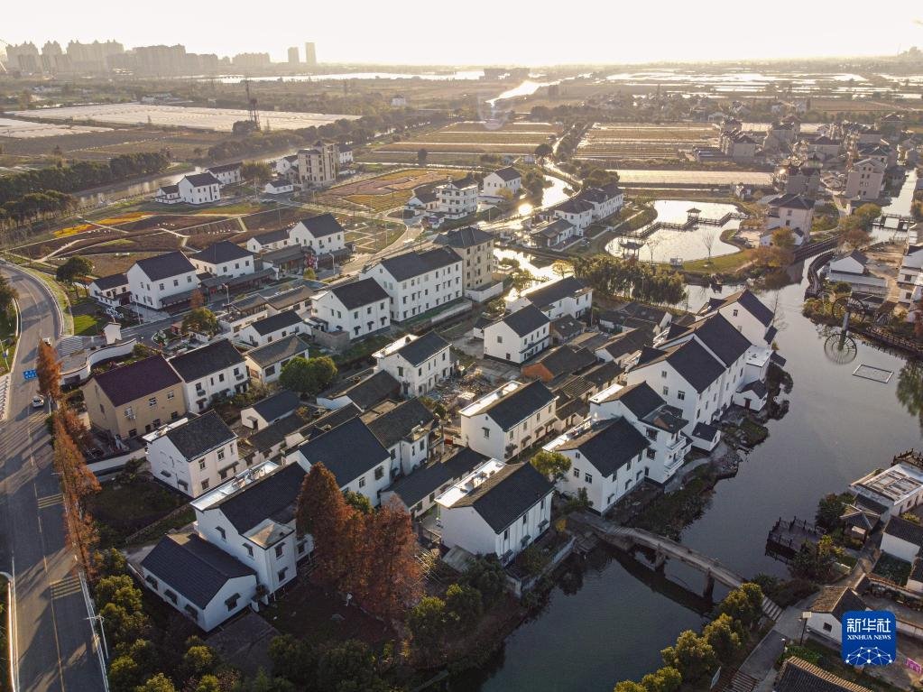 浙江省嘉興市秀洲區(qū)油車港鎮(zhèn)勝豐村景色( 2020年12月15日攝,無人機照片)。新華社記者 江漢 攝