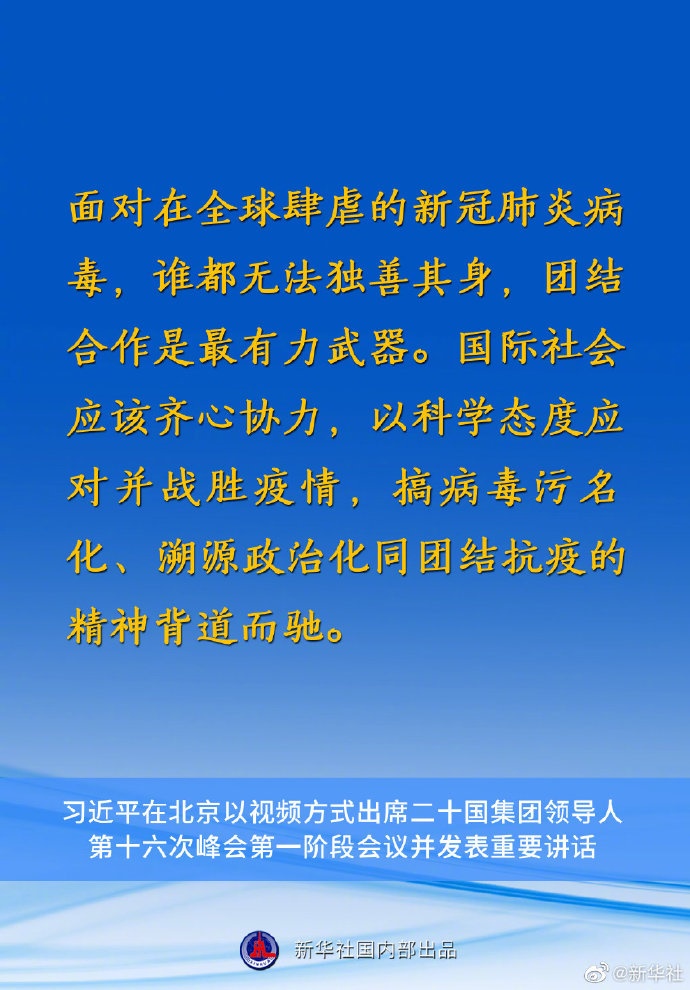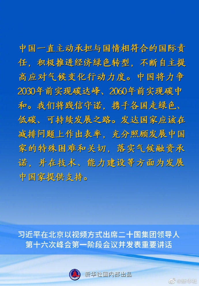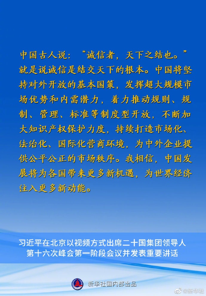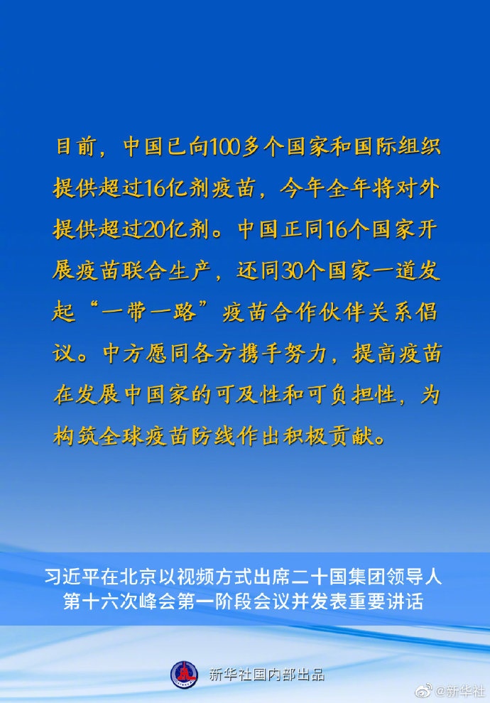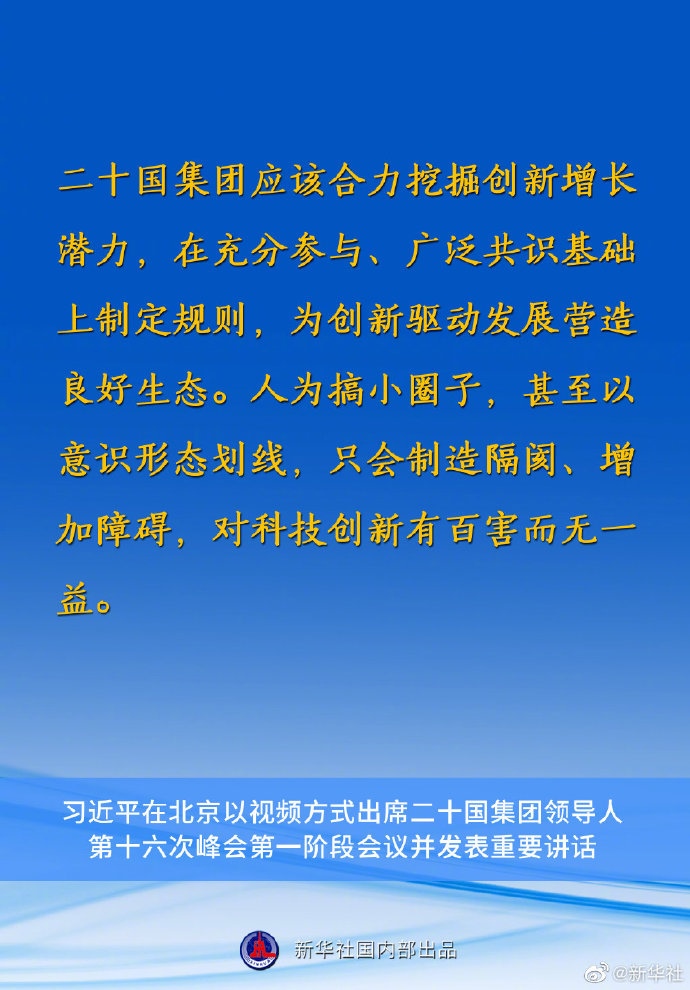 國家主席習(xí)近平10月30日在北京以視頻方式出席二十國集團(tuán)領(lǐng)導(dǎo)人第十六次峰會第一階段會議并發(fā)表重要講話。講話有哪些要點(diǎn),一起來看↓