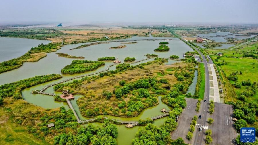 這是5月13日拍攝的山東黃河三角洲國(guó)家級(jí)自然保護(hù)區(qū)景色(無人機(jī)照片)。新華社記者 郭緒雷 攝