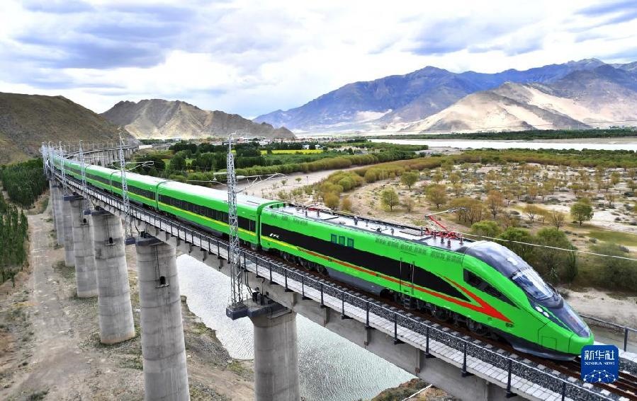 這是試運(yùn)行的復(fù)興號(hào)列車行駛在西藏山南市境內(nèi)(6月16日攝)。6月25日,全長(zhǎng)435公里、設(shè)計(jì)時(shí)速160公里的拉林鐵路建成通車,西藏首條電氣化鐵路建成,同時(shí)復(fù)興號(hào)實(shí)現(xiàn)對(duì)31個(gè)省區(qū)市全覆蓋。新華社記者