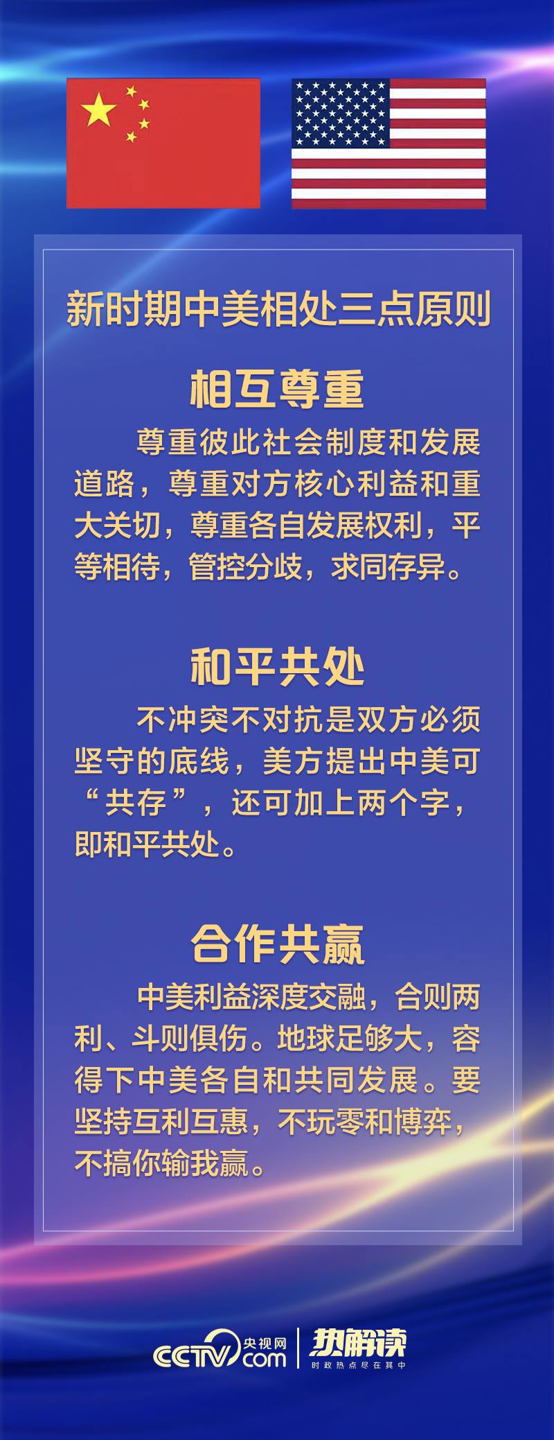對于中美在一些問題上的不同看法,習(xí)主席反復(fù)強調(diào),要聚焦合作、管控分歧。增多接觸、加強溝通,有助于準(zhǔn)確了解彼此的政策意圖,避免誤解誤判。