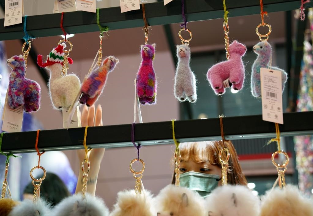 2021年11月7日,第四屆中國國際進口博覽會上,用秘魯羊駝毛制作的掛件廣受歡迎。