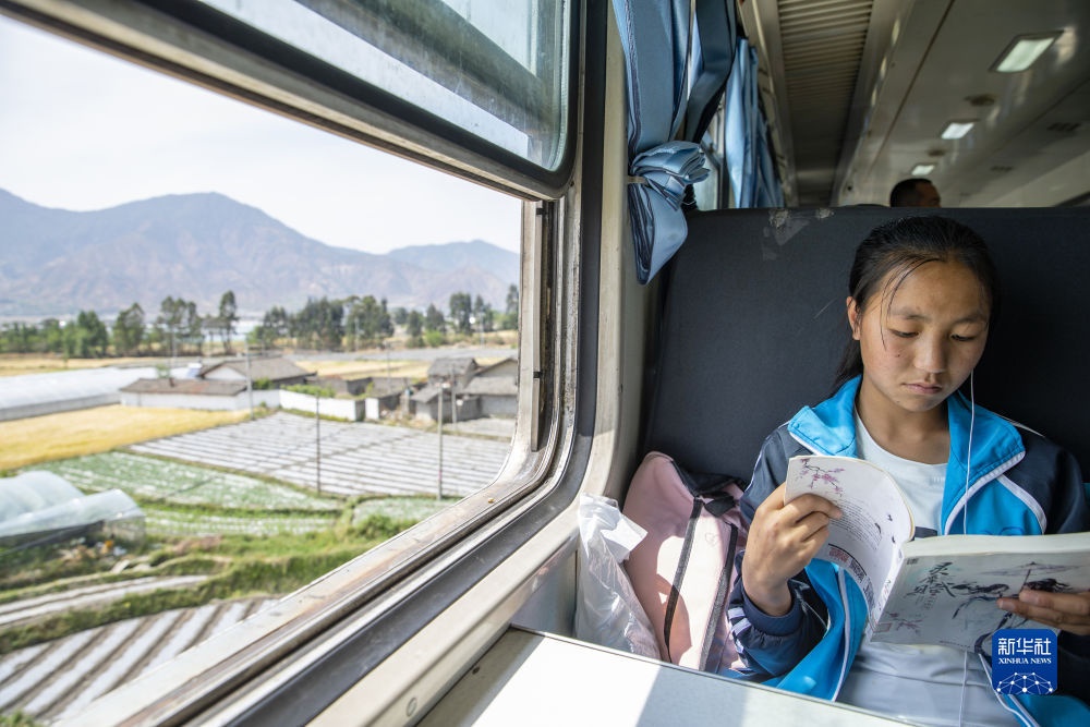 2021年4月15日,一名喜德縣瓦爾學(xué)校的學(xué)生乘坐5634次列車回家。5633/5634次列車被人們親切地稱為“慢火車”,陪伴著四川大涼山地區(qū)幾代人的成長,是百姓外出的“公交列車”,也是孩子們求學(xué)的“校車”。新華社記者 沈伯韓攝