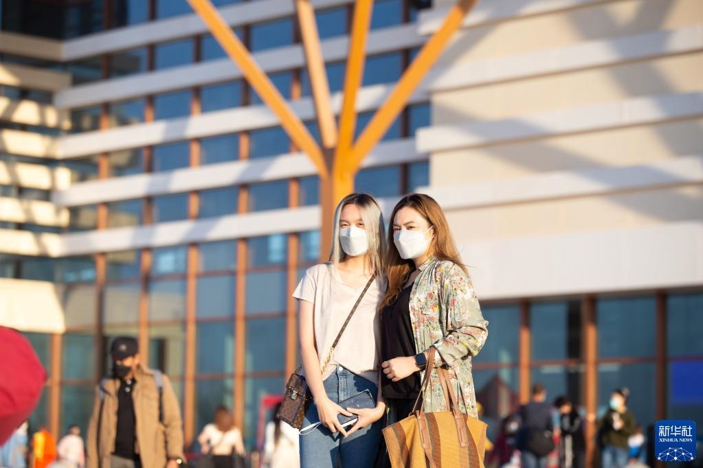 2021年12月12日,旅客在中老鐵路萬象站廣場(chǎng)拍照。新華社記者 章建華 攝