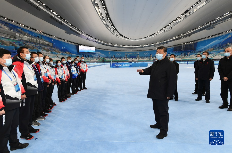 1月4日,中共中央總書記、國家主席、中央軍委主席習近平在北京考察2022年冬奧會、冬殘奧會籌辦備賽工作。這是4日上午,習近平在國家速滑館考察。新華社記者 謝環(huán)馳 攝