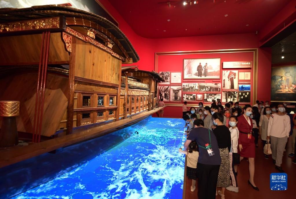 觀眾在中國共產黨歷史展覽館參觀(2021年10月1日攝)。新華社記者李賀攝