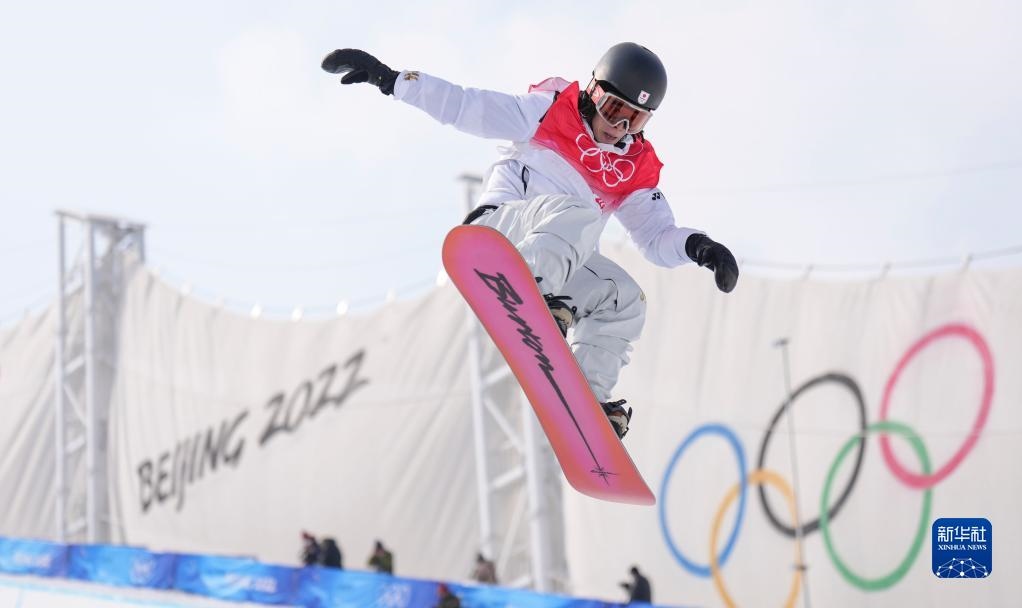 2月9日,日本選手平野步夢在單板滑雪男子U型場地技巧資格賽中。新華社記者 牟宇 攝