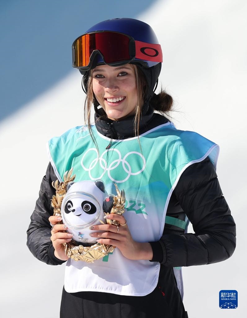 2月8日,自由式滑雪女子大跳臺比賽冠軍、中國選手谷愛凌在頒發(fā)紀念品儀式上。新華社記者 丁旭 攝