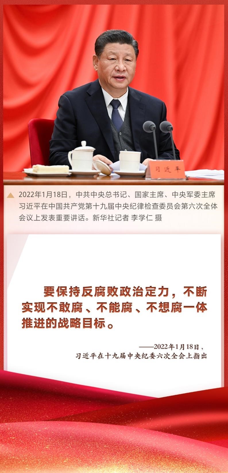 “要保持反腐敗政治定力,不斷實現(xiàn)不敢腐、不能腐、不想腐一體推進的戰(zhàn)略目標。”中共中央總書記、國家主席、中央軍委主席習近平在十九屆中央紀委六次全會上發(fā)表重要講話,深刻總結新時代黨的自我革命的成功實踐,深刻闡述全面從嚴治黨取得的歷史性、開創(chuàng)性成就,產(chǎn)生的全方位、深層次影響,對堅持不懈把全面從嚴治黨向縱深推進、迎接黨的二十大勝利召開作出戰(zhàn)略部署。