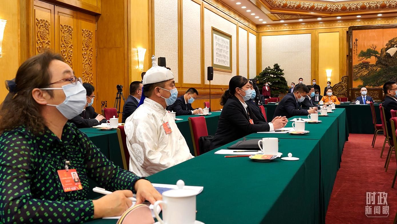 △2022年3月5日,內(nèi)蒙古代表團審議現(xiàn)場。(總臺央視記者石丞拍攝)
