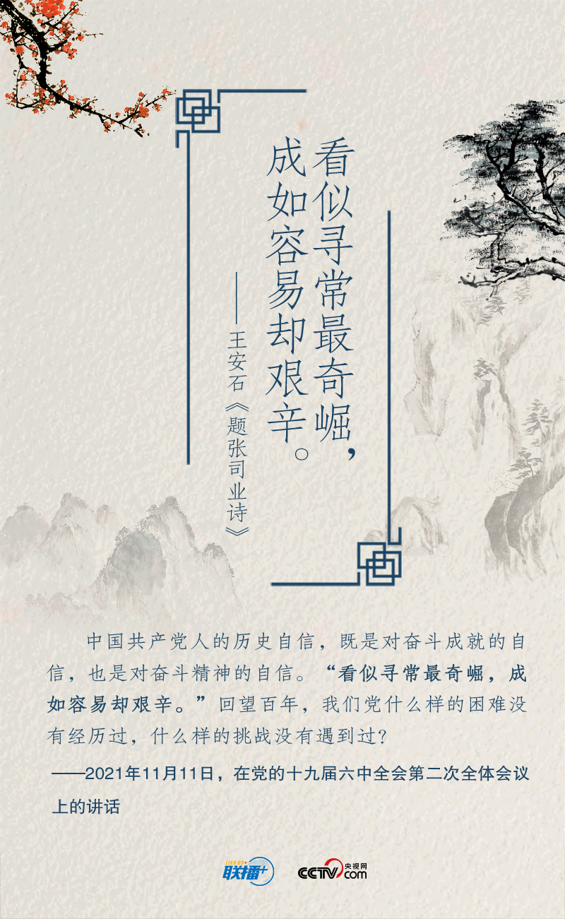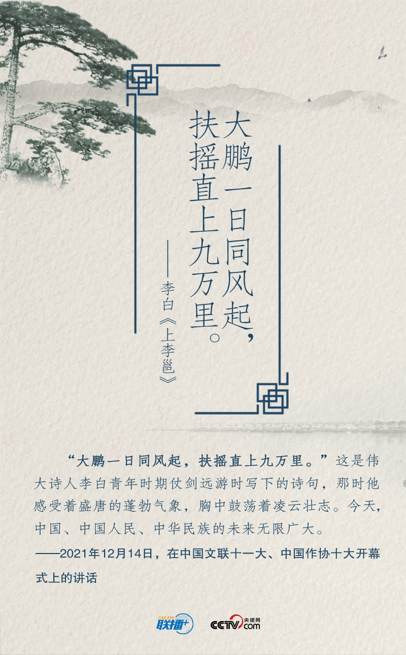 黨的十八大以來,在實(shí)現(xiàn)中華民族偉大復(fù)興中國夢的征途中,習(xí)近平總書記就“奮斗”作出一系列重要論述。以“長風(fēng)破浪會(huì)有時(shí)”展望中華民族的明天,用“不畏浮云遮望眼”號召中華兒女?dāng)]起袖子加油干……總書記多次精妙運(yùn)用經(jīng)典詩詞,凝聚新時(shí)代奮斗力量。央視網(wǎng)《聯(lián)播+》特進(jìn)行梳理,與您一起領(lǐng)悟總書記的“奮斗觀”,讓我們在新征程中共同奮斗。