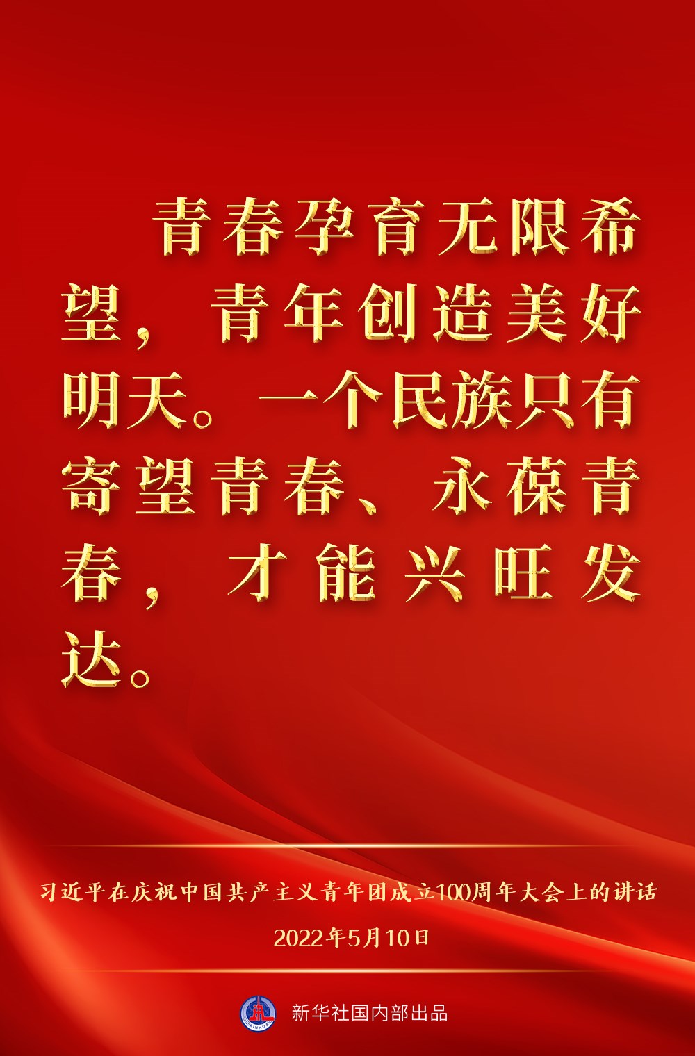 5月10日上午,中共中央總書記、國家主席、中央軍委主席習近平出席慶祝中國共產(chǎn)主義青年團成立100周年大會并發(fā)表重要講話,一起來看金句。