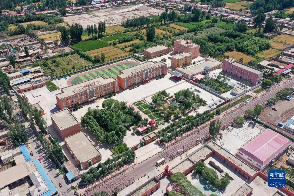 這是新疆喀什地區(qū)疏附縣托克扎克鎮(zhèn)中心小學(xué)(2022年6月10日攝,無人機(jī)照片)。新華社記者 丁磊 攝