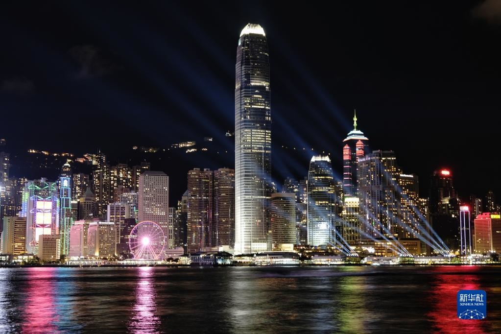這是2022年6月25日在香港尖沙咀拍攝的香港島燈光秀。新華社記者 王申 攝