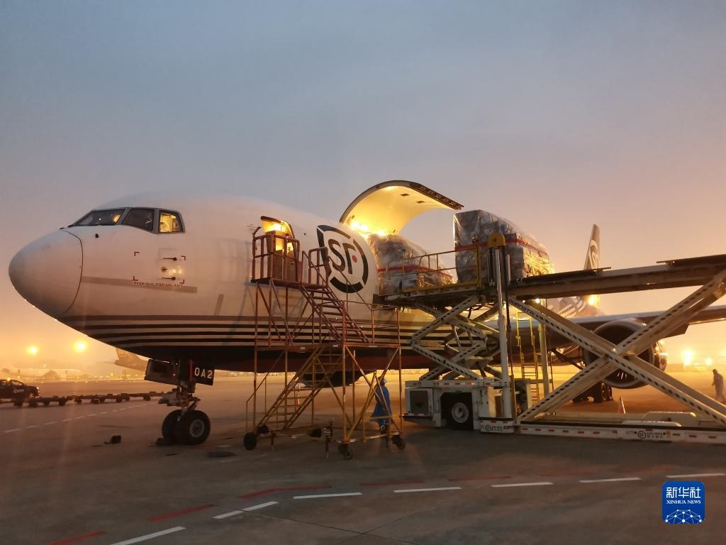 一架載有45噸物資的順豐航空貨運(yùn)包機(jī)從深圳寶安國(guó)際機(jī)場(chǎng)飛往香港,深港兩地貨運(yùn)包機(jī)航線正式開通(2022年3月19日攝)。新華社發(fā)