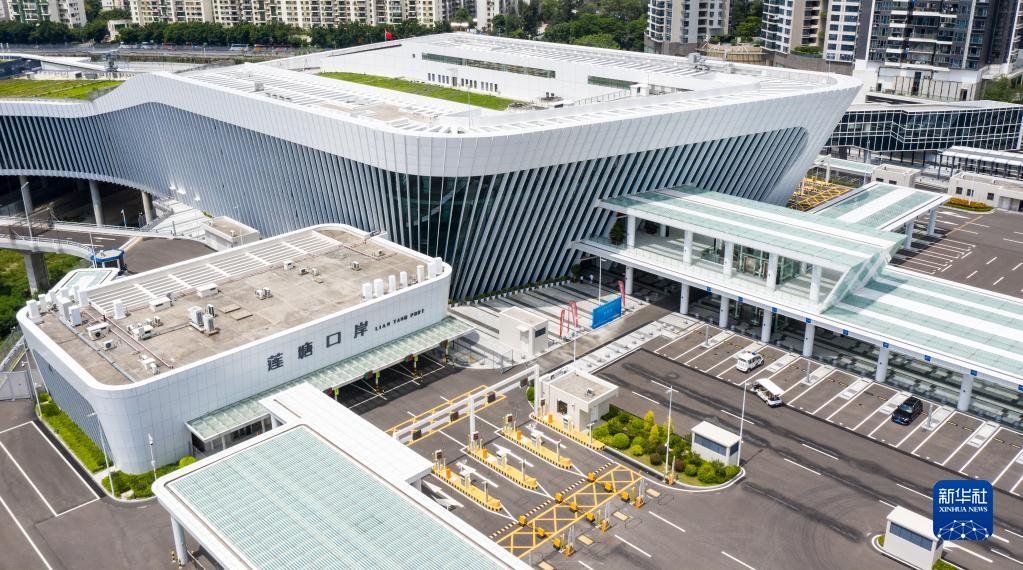 這是蓮塘/香園圍口岸(2020年8月26日攝,無(wú)人機(jī)照片)。該口岸是深港間第七座陸路口岸。新華社記者 毛思倩 攝