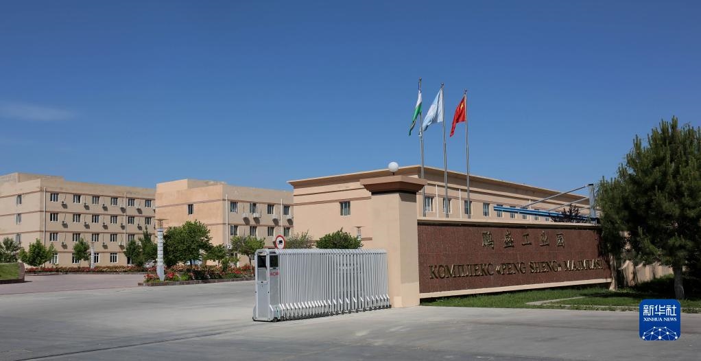 這是2018年5月8日拍攝的烏茲別克斯坦鵬盛工業(yè)園入口。鵬盛工業(yè)園是中國民營企業(yè)直接在烏投資建立的首個中烏合資工業(yè)園區(qū)。新華社記者周良攝