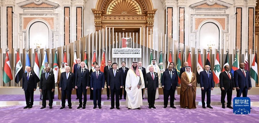 當(dāng)?shù)貢r(shí)間12月9日下午,首屆中國(guó)-阿拉伯國(guó)家峰會(huì)在沙特首都利雅得阿卜杜勒阿齊茲國(guó)王國(guó)際會(huì)議中心舉行。國(guó)家主席習(xí)近平和沙特王儲(chǔ)兼首相穆罕默德、埃及總統(tǒng)塞西、約旦國(guó)王阿卜杜拉二世、巴林國(guó)王哈馬德、科威特王儲(chǔ)米沙勒、突尼斯總統(tǒng)賽義德、吉布提總統(tǒng)蓋萊、巴勒斯坦總統(tǒng)阿巴斯、卡塔爾埃米爾塔米姆、科摩羅總統(tǒng)阿扎利、毛里塔尼亞總統(tǒng)加茲瓦尼、伊拉克總理蘇達(dá)尼、摩洛哥首相阿赫努什、阿爾及利亞總理阿卜杜拉赫曼、黎巴嫩總理米卡提等21個(gè)阿盟國(guó)家領(lǐng)導(dǎo)人以及阿拉伯國(guó)家聯(lián)盟秘書(shū)長(zhǎng)蓋特等國(guó)際組織負(fù)責(zé)人出席峰會(huì)。習(xí)近平在會(huì)上發(fā)表題為《弘揚(yáng)中阿友好精神 攜手構(gòu)建面向新時(shí)代的中阿命運(yùn)共同體》的主旨講話。新華社記者 謝環(huán)馳 攝