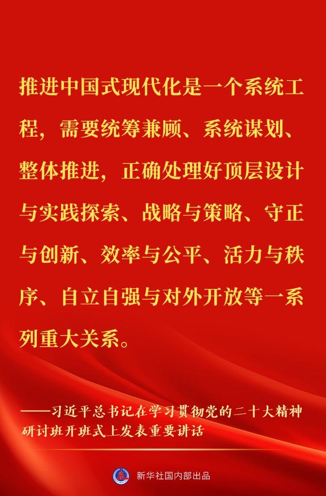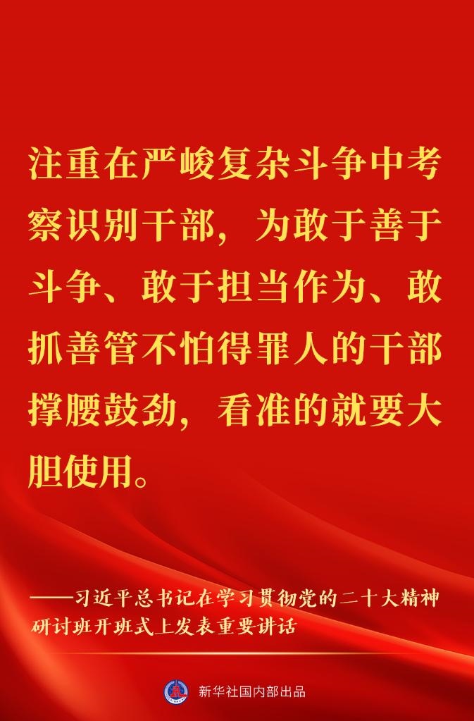 新進(jìn)中央委員會(huì)的委員、候補(bǔ)委員和省部級(jí)主要領(lǐng)導(dǎo)干部學(xué)習(xí)貫徹習(xí)近平新時(shí)代中國(guó)特色社會(huì)主義思想和黨的二十大精神研討班7日上午在中央黨校(國(guó)家行政學(xué)院)開(kāi)班。中共中央總書(shū)記、國(guó)家主席、中央軍委主席習(xí)近平在開(kāi)班式上發(fā)表重要講話。一起來(lái)看金句↓