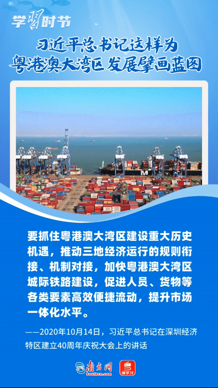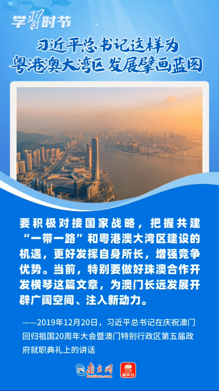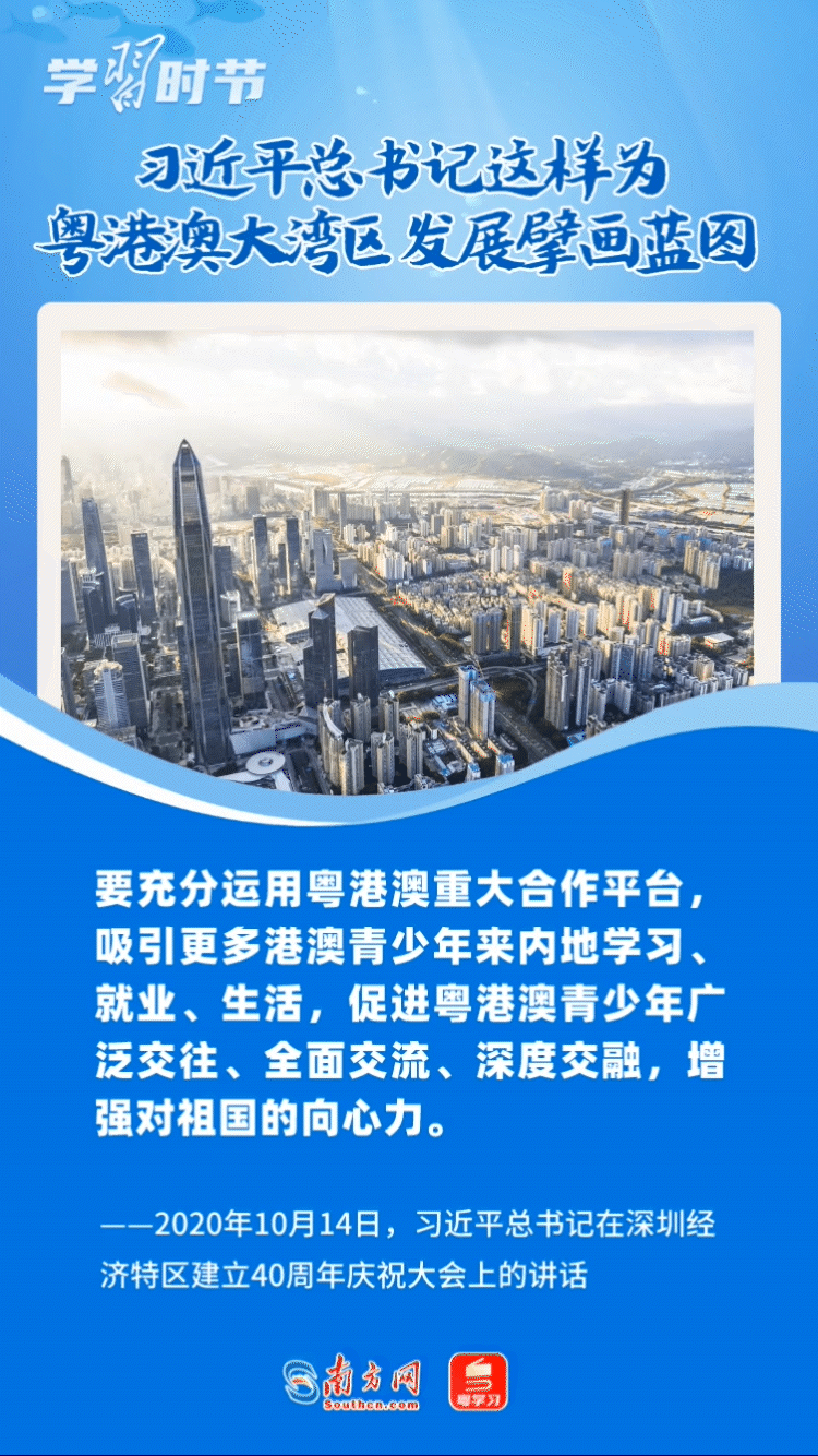 在《粵港澳大灣區(qū)發(fā)展規(guī)劃綱要》公布四周年之際,讓我們共同學習回顧總書記關(guān)于粵港澳大灣區(qū)建設的重要論述,體悟總書記為這個重大國家戰(zhàn)略擘畫藍圖的遠見卓識與雄韜偉略。