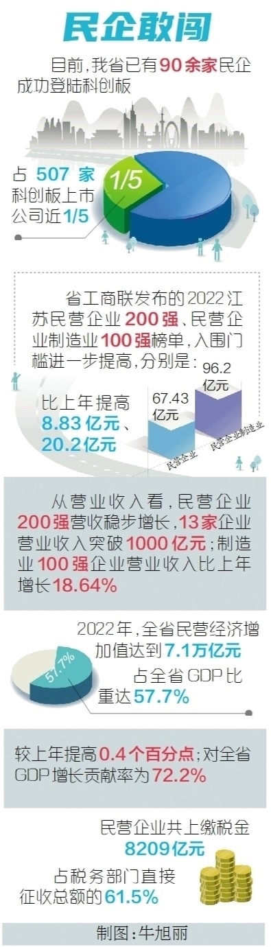 民營(yíng)企業(yè)不斷發(fā)展壯大,民營(yíng)經(jīng)濟(jì)走向更加廣闊的舞臺(tái)。近年來成立的兩家民營(yíng)銀行,成為全省民企敢闖敢試的生動(dòng)寫照。江蘇蘇寧銀行是江蘇首家民營(yíng)銀行,成立以來累計(jì)服務(wù)小微企業(yè)客戶超120萬戶,為小微客戶提供資金支持超1000億元。截至2022年末,該行普惠小微企業(yè)貸款余額226.38億元,較年初增加45.38%,占各項(xiàng)貸款余額的40.14%,增幅和占比均遠(yuǎn)高于全國(guó)銀行業(yè)平均水平。成立于2020年的無錫錫商銀行,則在成立之初就提出,將積極探索具有物聯(lián)網(wǎng)金融特色的科技型銀行,成為民營(yíng)銀行中“現(xiàn)代企業(yè)制度+企業(yè)黨建+社會(huì)責(zé)任”的樣板,打造成全國(guó)民營(yíng)銀行的標(biāo)桿。