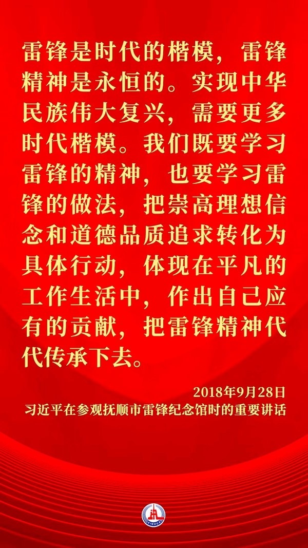 “雷鋒是時代的楷模,雷鋒精神是永恒的。實現(xiàn)中華民族偉大復(fù)興,需要更多時代楷模?!绷?xí)近平總書記的號召,喚起億萬人奮斗與堅守。新時代,雷鋒精神是持續(xù)激發(fā)崇德向善的磅礴偉力;新時代“雷鋒”,在新征程上頑強拼搏,匯聚起共和國奔騰向前的時代潮流!