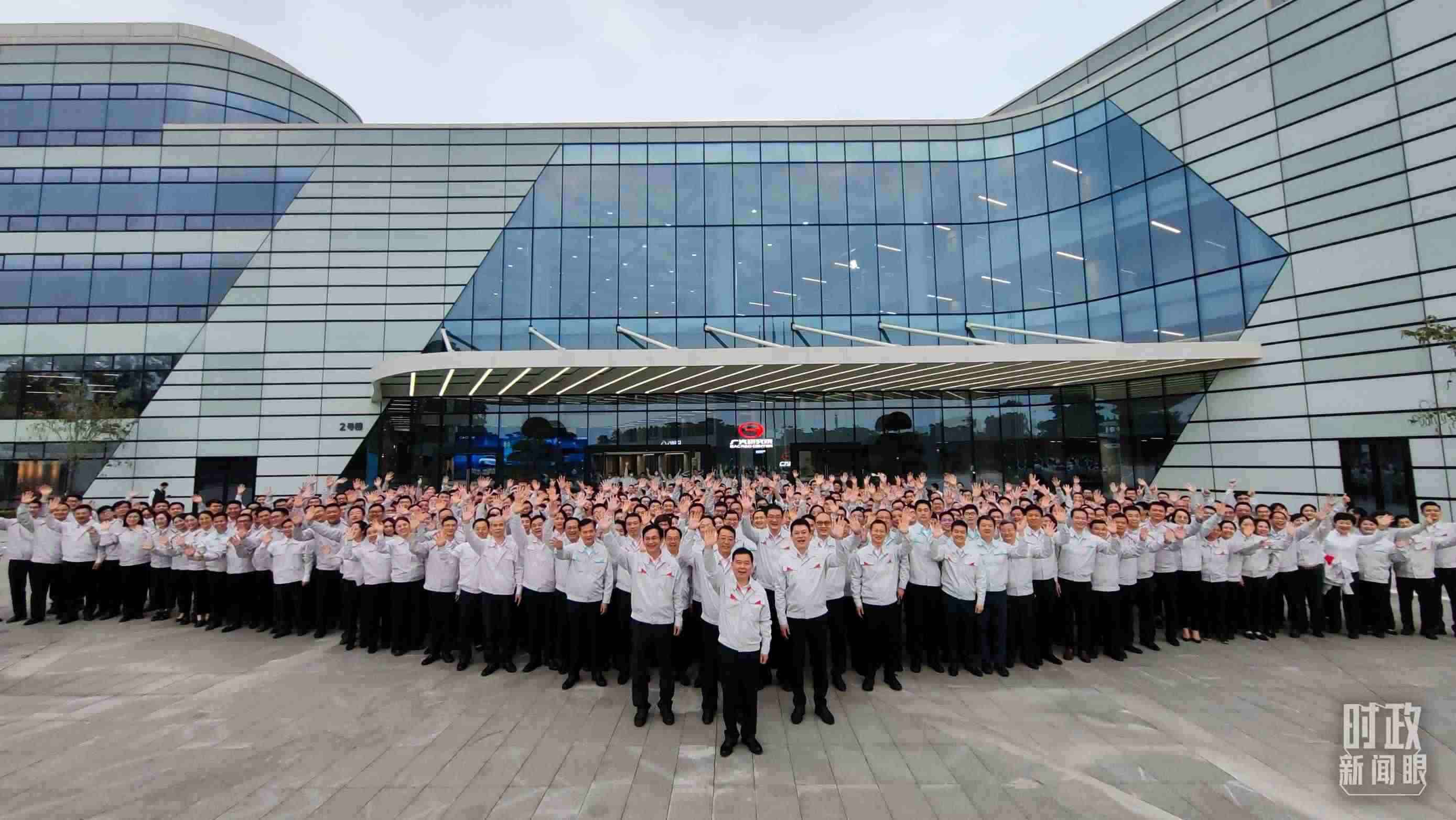 △考察當天,廣汽員工代表大合影。(總臺央視記者張曉鵬拍攝)